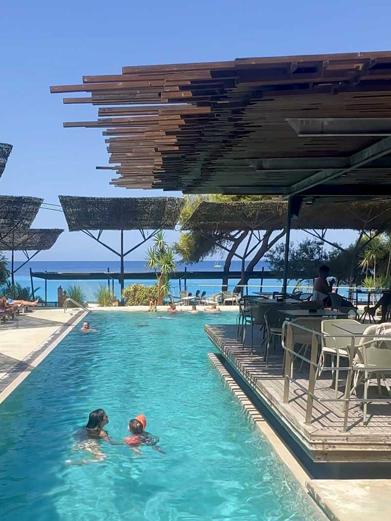 קופלה הוא ביץ’ קלאב מפונפן ומעוצב שנחשב לאחד המקומות החזקים בחוף קתיסמה. מדובר במתחם גדול ומטופח עם בריכה מרכזית, ג’קוזי ובריכת ילדים, מוזיקה טובה ואווירה רגועה יחסית גם בימים עמוסים. זה מקום שאפשר להעביר בו יום שלם בלי לזוז, עם שירות מלא של אוכל, שתייה ומקלחות, והוא עובד מצוין גם לזוגות וגם למשפחות.